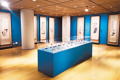 為了營造中國人讀書作畫的現(xiàn)場,展覽專門復(fù)原了一個(gè)中式書房,觀眾可拍照留念,也可在此手持毛筆畫卷,體驗(yàn)中國人的書寫方式。