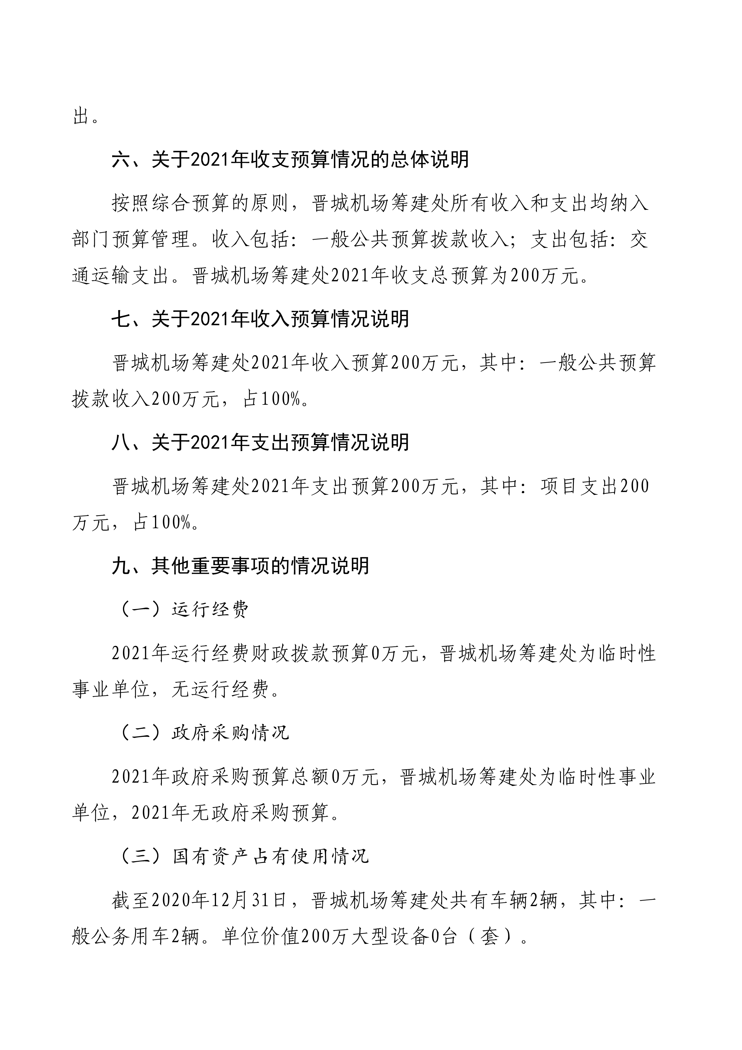 晉城機(jī)場(chǎng)籌建處2021年度預(yù)算公開(kāi)