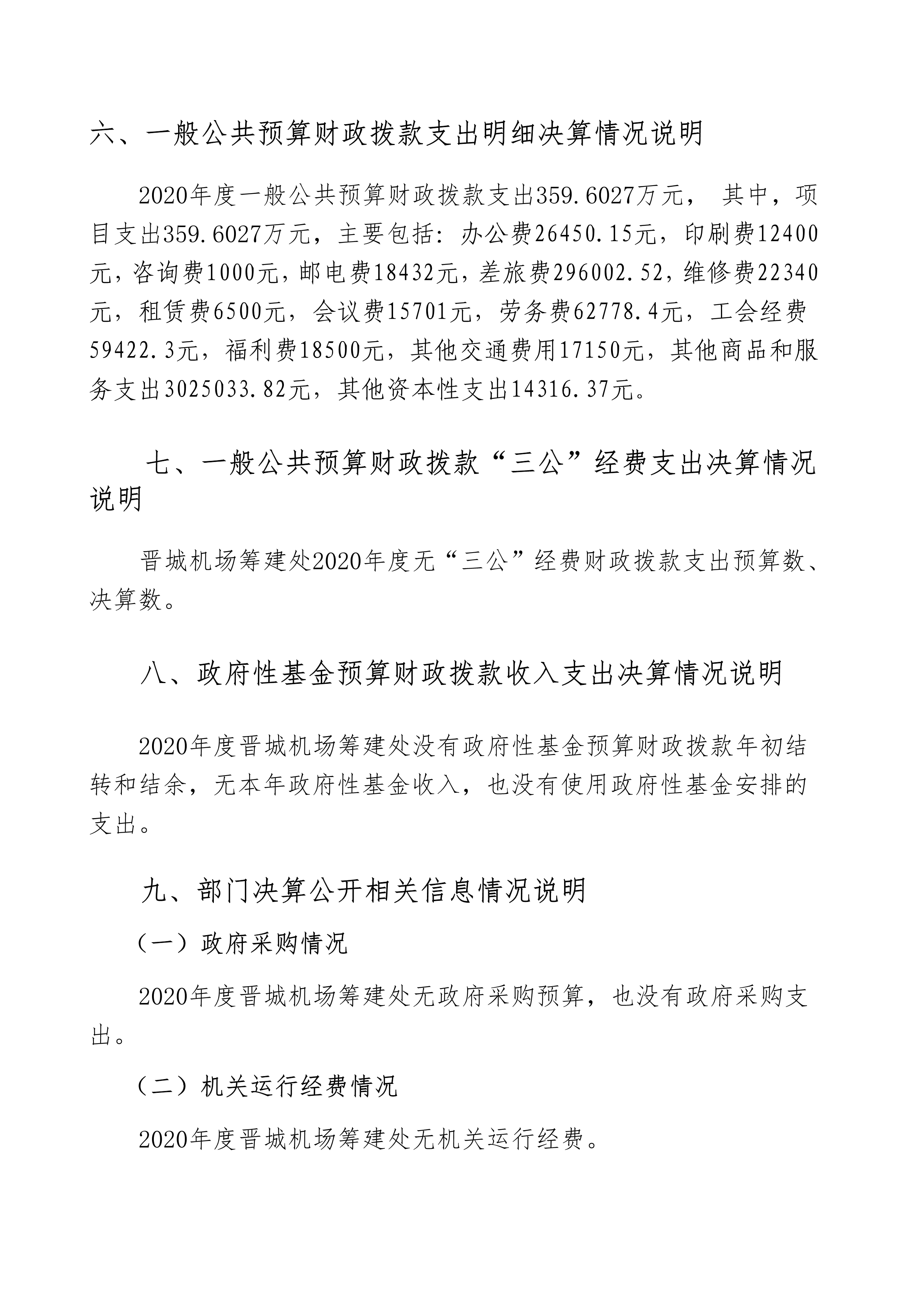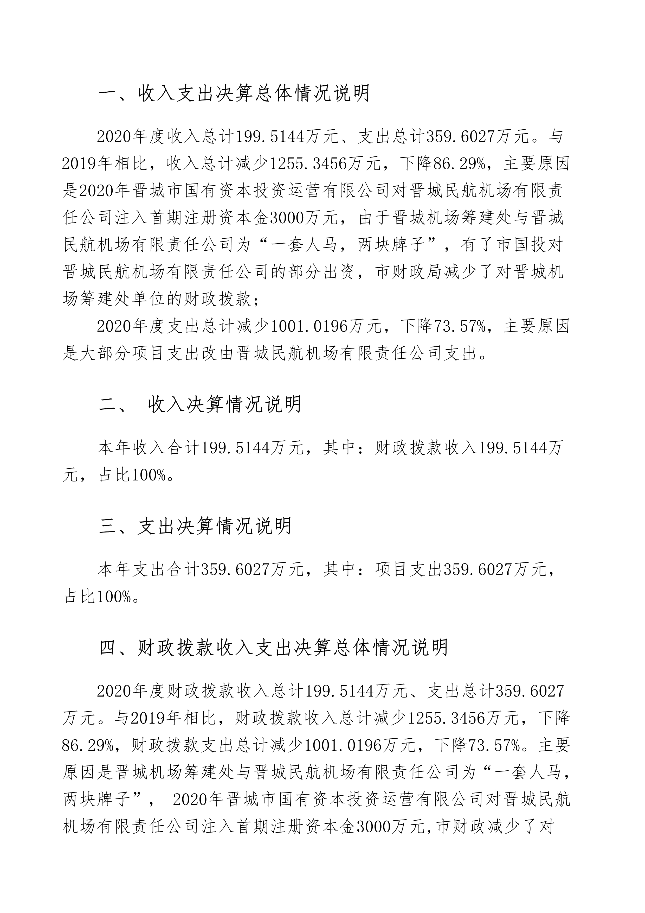 晉城機(jī)場(chǎng)籌建處2020年度決算公開(kāi)