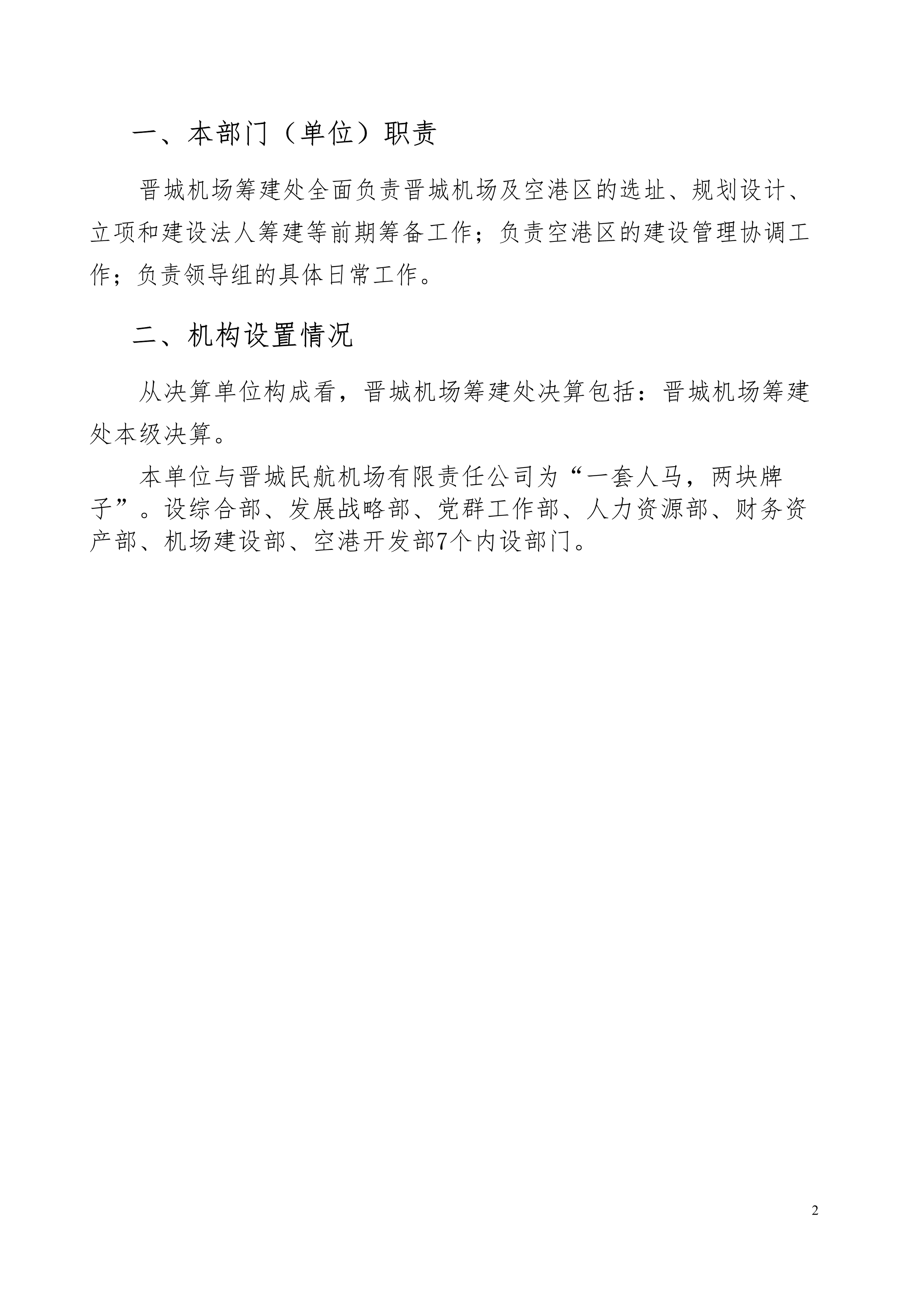 晉城機(jī)場(chǎng)籌建處2022年度預(yù)算公開