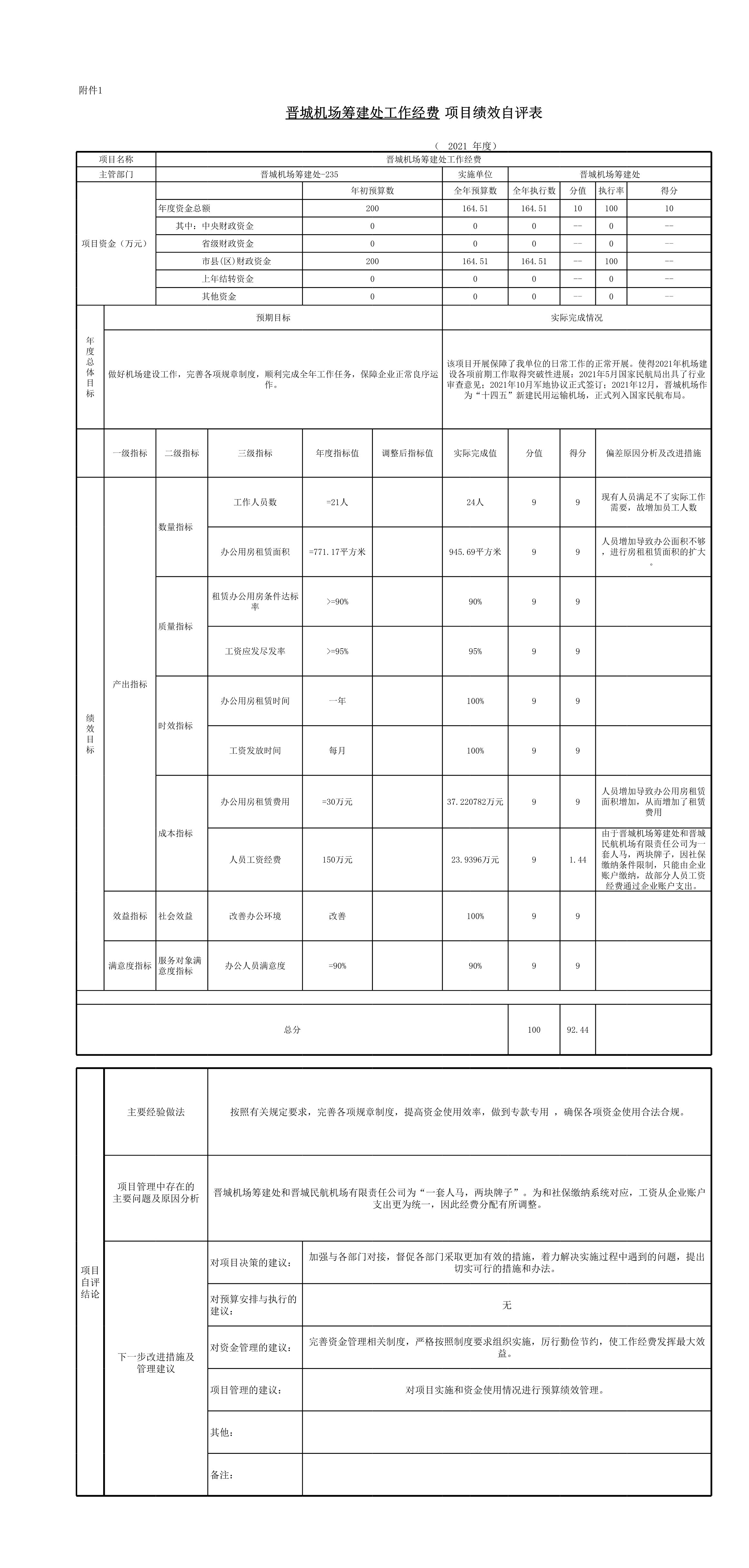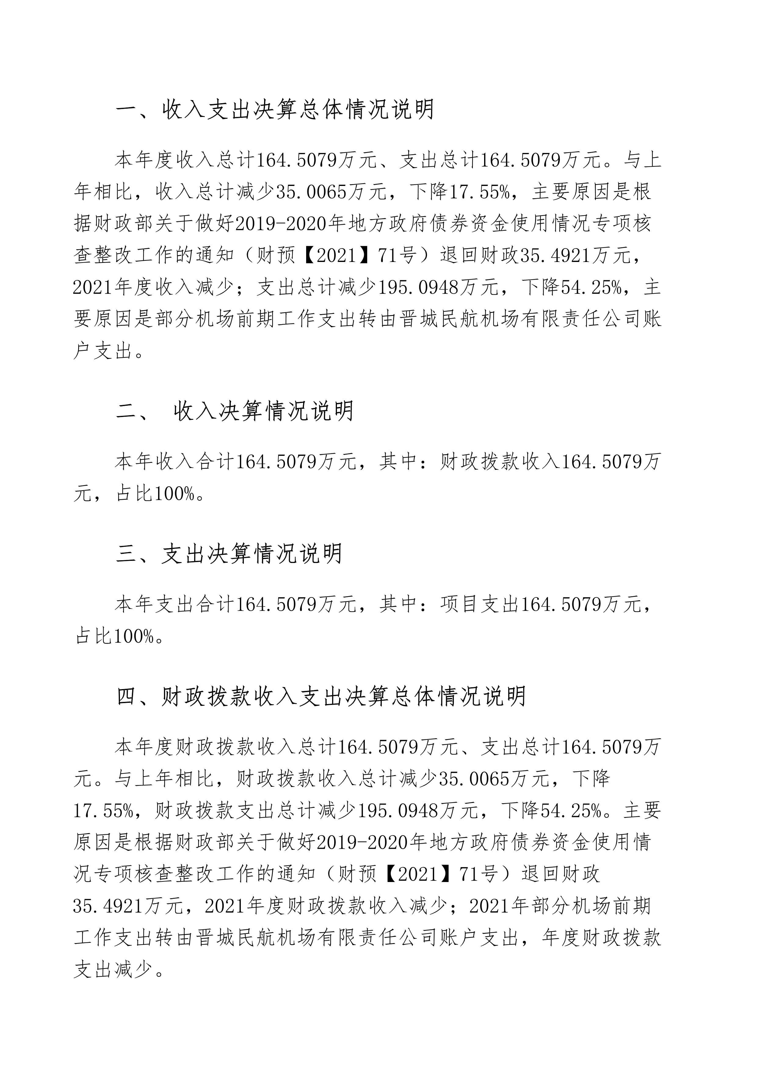 晉城機(jī)場(chǎng)籌建處2021年度決算公開